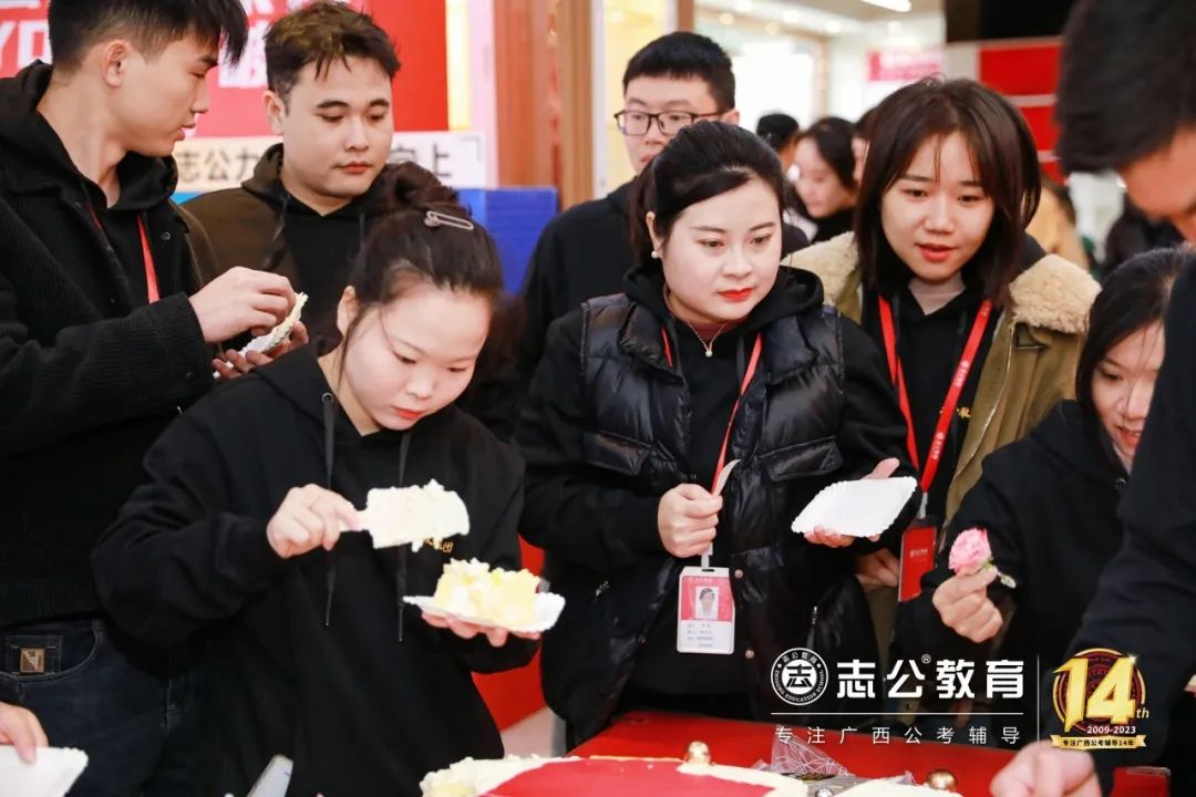 這個(gè)蛋糕不僅象征著志公走過(guò)的14個(gè)輝煌歲月,更代表了志公未來(lái)更加美好的明天。在場(chǎng)的所有員工都分享了這份喜悅和甜蜜,共同祝愿志公教育越來(lái)越好。