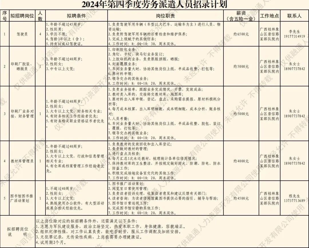 (五)公示錄用擬聘人員名單將在融通人力公司公眾號(hào)進(jìn)行公示,公示期為5個(gè)工作日。公示無(wú)異議或者反映問(wèn)題不影響聘用的擬聘人員,與融通人力資源開(kāi)發(fā)有限公司簽訂勞務(wù)派遣勞動(dòng)合同,辦理入職相關(guān)手續(xù)。