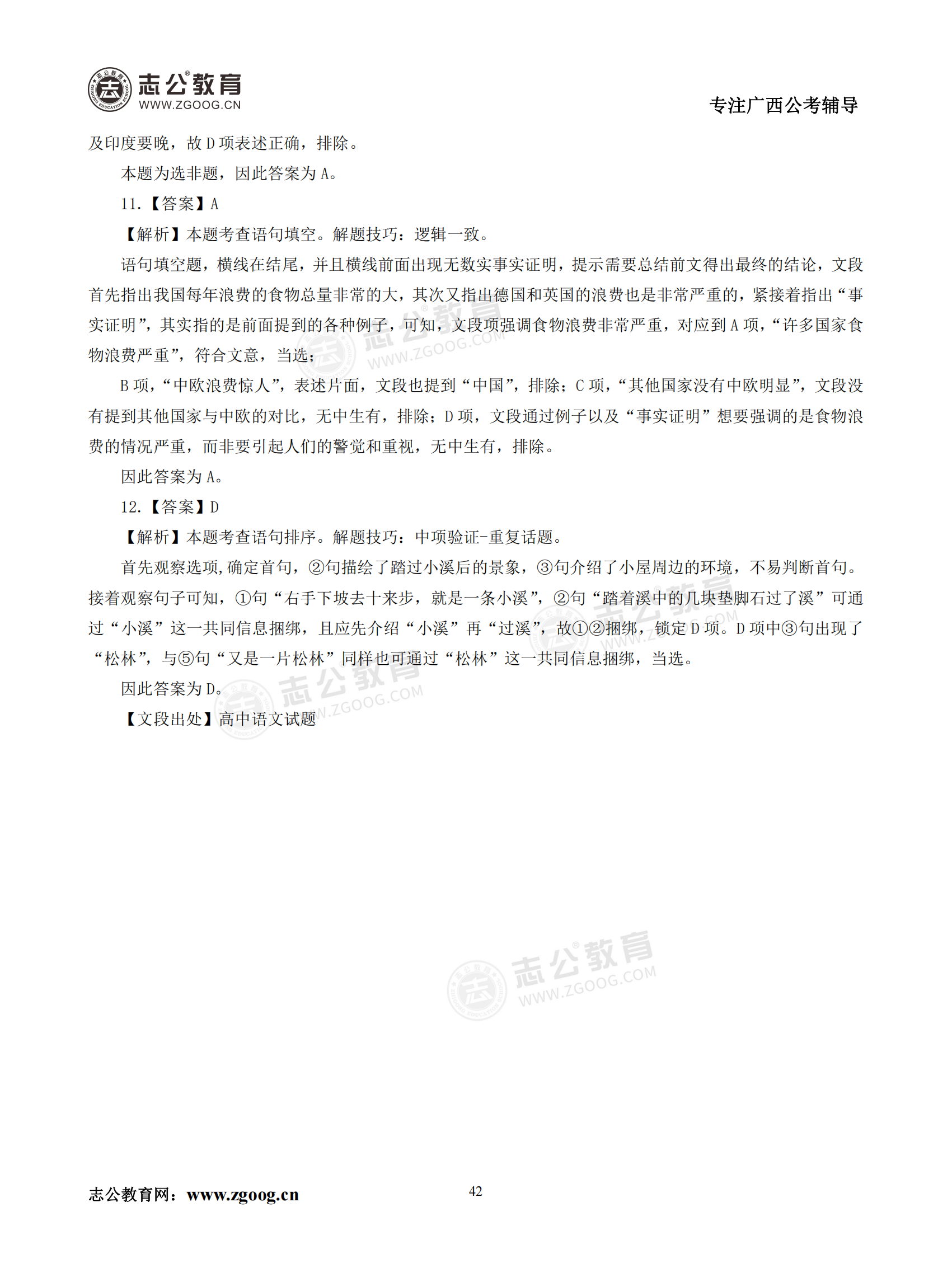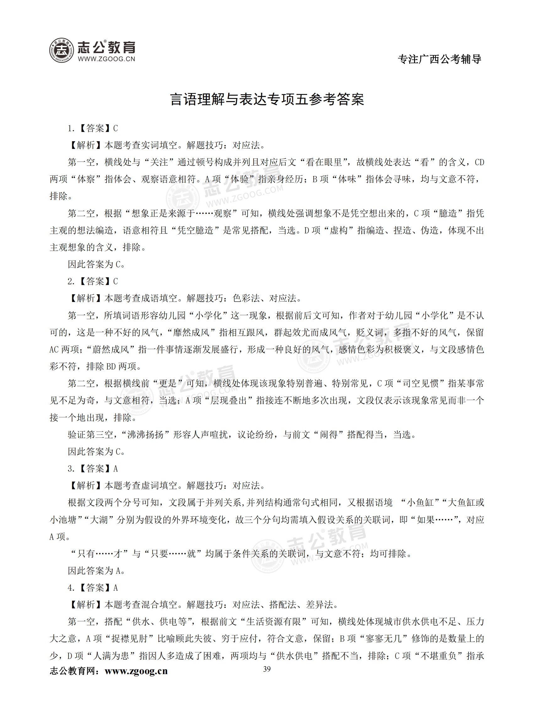 【公考模塊練習】言語理解題五(答案)