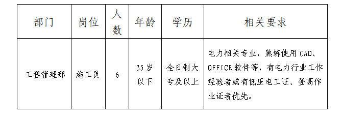 根據(jù)公司業(yè)務(wù)發(fā)展需要,面向社會公開招聘專業(yè)技術(shù)人員6名,現(xiàn)將招聘相關(guān)事項公告如下: