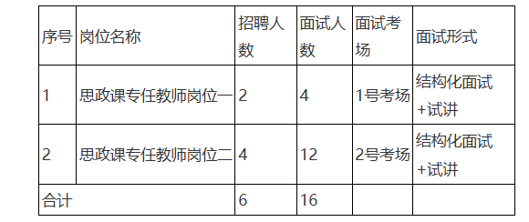 本次招聘崗位均采用“公共結(jié)構(gòu)化面試+專(zhuān)業(yè)能力測(cè)試(試講)”的方式組織。