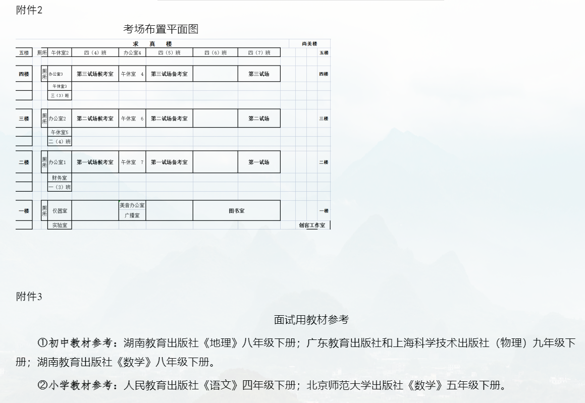 (一)時間:2025年7月11日??忌直救擞行趦?nèi)身份證原件及“面試通知”,于面試當天上午7:30前到達考點恭城瑤族自治縣縣城第二中心小學對應候考室。7:35在各考場候考室抽簽,7:50第一個考生準時備考,8:20試講。凡面試當天遲到者(7:35后),按自動放棄面試資格處理。
