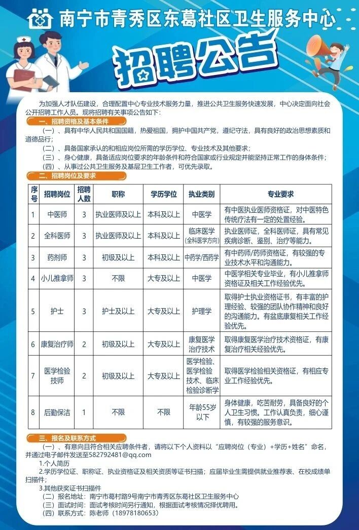 2025年南寧市青秀區(qū)東葛社區(qū)衛(wèi)生服務(wù)中心招聘公告