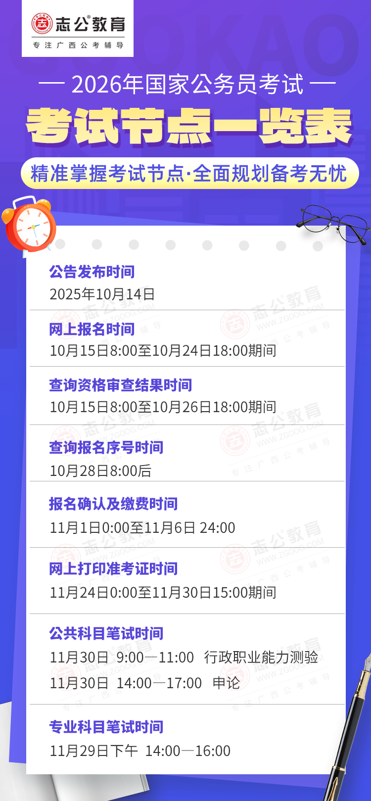 2026年國考報名時間為:10月15日8:00至10月24日18:00