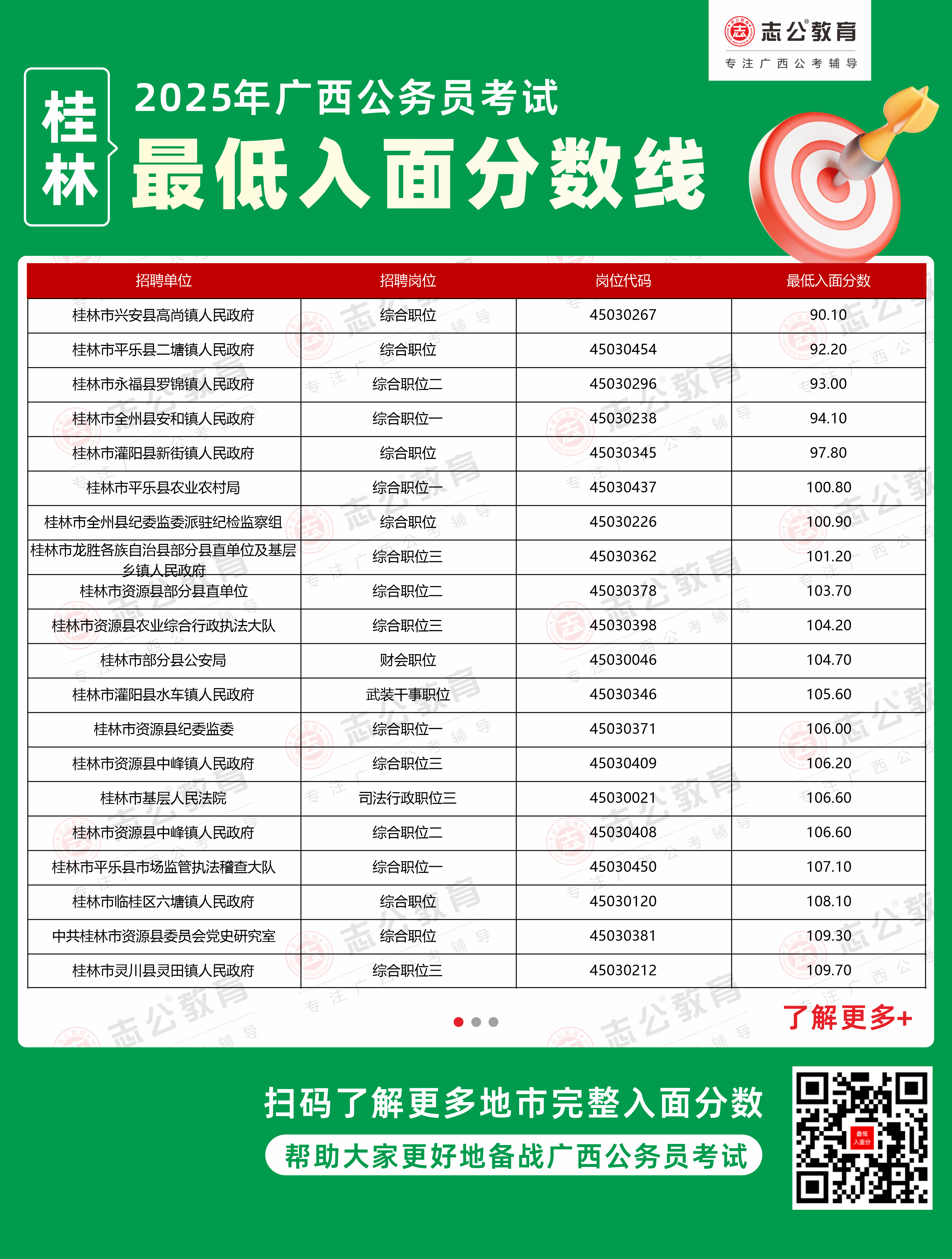 (點(diǎn)擊下載更多2025年桂林公務(wù)員最低入面分?jǐn)?shù),數(shù)據(jù)整理自官方發(fā)布的面試資格審查公告)