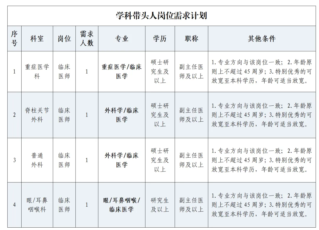 (四)原則上年齡不超過(guò)35歲,學(xué)科帶頭人、碩士學(xué)位不超過(guò)45歲,特別優(yōu)秀的可適放寬;